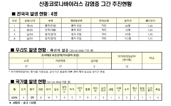 중국 우한에서 도내 입국(1.13.~1.23.)한 23명 모니터링 완료 : '20. 1. 29.