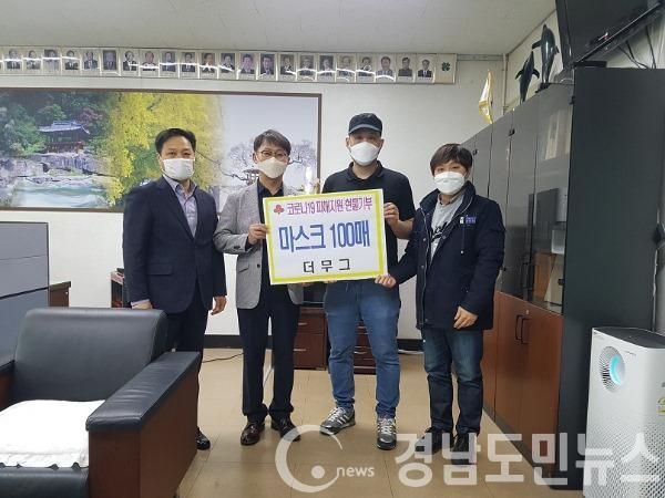 거창 더무그 베이커리(대표 최정목)는 1일 거창읍행정복지센터(읍장 신영수)를 방문해 코로나19로 어려움을 겪고 있는 저소득층 가구와 취약계층을 위해 써달라며 마스크 100매를 기부했다.