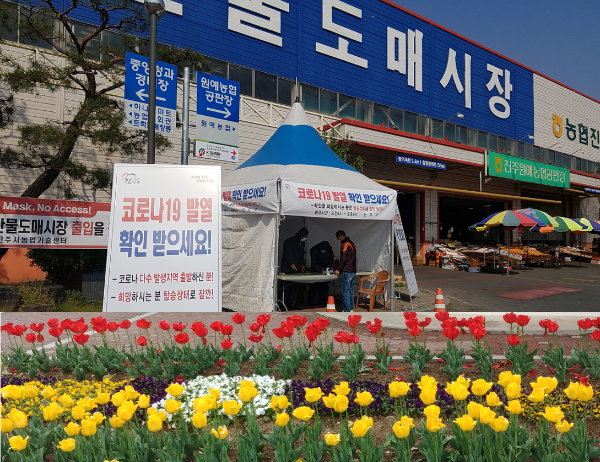 시는 다중이용시설인 농산물도매시장 내 코로나19 확산방지를 위하여 발열 확인 부스를 설치 운영 중에 있으며, 도매시장 시설전역에 대대적인 방역을 실시하고, 경매장, 공용화장실 등에 손 소독제 비치, 마스크 착용 현수막 게첨, 개인위생 실천 홍보방송 등을 실시함은 물론 도매시장 법인, 중도매인 등 모든 유통종사자의 역할을 점검하고 철저한 대응을 추진해 왔다.