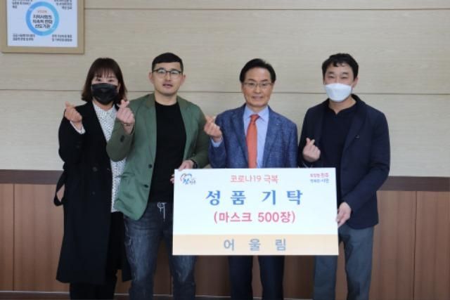 사회봉사단체인 어울림(회장 김경운)은 14일 오후 2시 마스크 500장(120만원 상당)을 코로나19 대응에 사용해 달라며 진주시복지재단(이사장 이성갑)에 직접 전달했다.