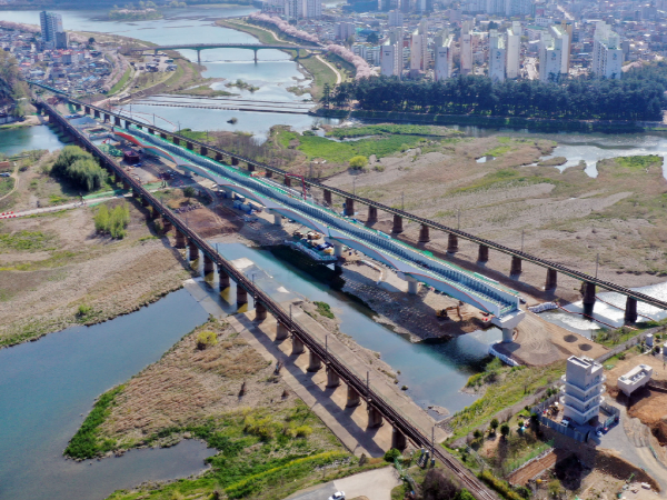 최신 공법인 유도상 슬래브 형식으로 한국철도시설공단에서 시행하고 있는 철도교는 총연장 복선 656m에 교각 13기, 상판 12개를 연결하는 공사로 현재 교각10기, 상판 9개를 설치완료한 상태다.