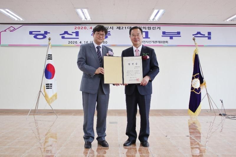 ‘지방자치단체장 선거 당선에 이은 두 번째 당선증인데, 오늘 이 당선증은 남다른 무게로 느껴져 더 어깨가 무겁다’ 면서 ‘지역민들의 염원을 잘 알고 있기에 생활정치로 실천하며 보답하겠다’고 소감을 밝혔다.