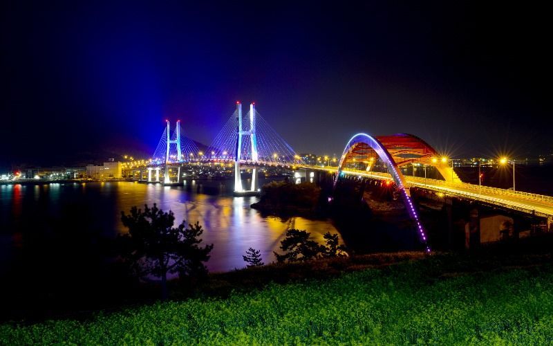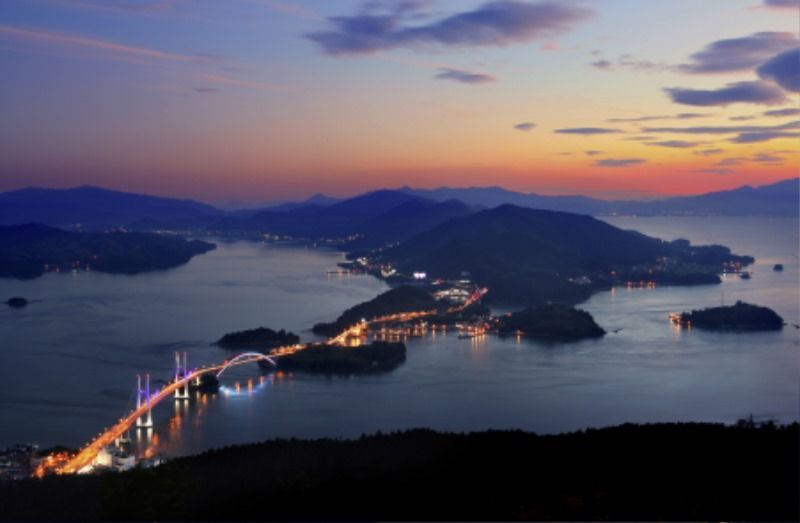 야간관광 100선에 선정된 삼천포대교는 우리나라 최초의 섬과 섬을 잇는 다리로 낮에는 바다와 산이 조화를 이루는 풍경에 빠지고, 저녁에는 아름답게 빛나는 조명이 검은 바다와 하늘, 도시의 불빛과 어울려 다양한 야경을 담을 수 있는 곳이다.