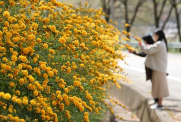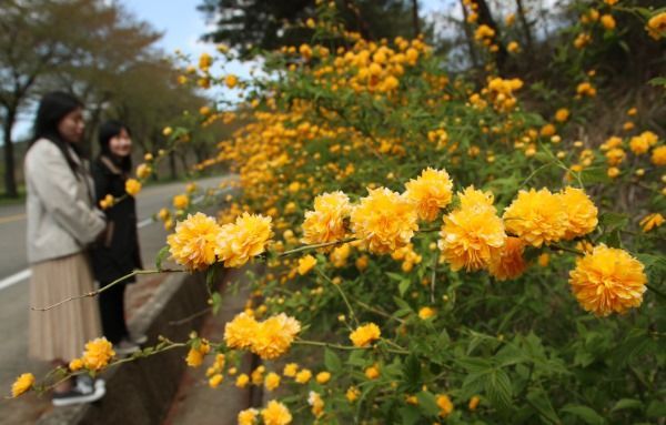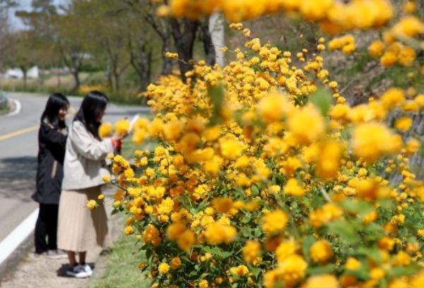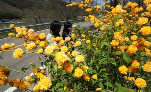 차황면은 황매산 철쭉과 함께 색다른 볼거리를 제공하기 위해 도로변에 황매화를 심어 가꾸고 있다.