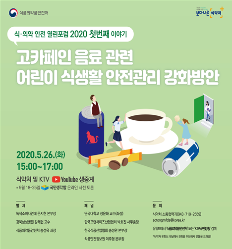 이번 포럼은 어린 학생들의 카페인 함유 식품 과잉 섭취에 대한 사회적 우려로 고카페인 음료 판매 제한 필요성 등이 제기됨에 따라, 소비자단체·의료계·학계·업계의 의견을 폭넓게 수용하고 향후 추진방안을 마련하기 위해 개최한다.