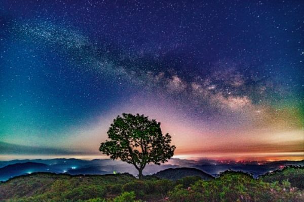 은하수를 가장 선명하게 볼수있는 시기는 7월~8월 달빛이 없는 거믐날 빛공해(광해)가 약한 곳에서 밤하늘을 올려다보면 수많은 신화와 전설이 스며있는 강물처럼 흐르는 은하수를 황매산에서 감상할 수 있다.