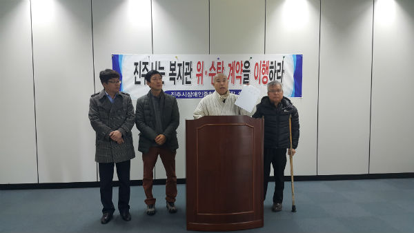그러면서 “진주시가 해인사자비원이 규정을 지키지 않아 장애인들에게 피해가 돌아가는 것처럼 호도하고 있으나, 이는 진주시가 법률과 계약을 위반해 일어난 일인만큼 진주시의 잘못으로 진주시가 책임져야 할 것”이라고 말했다.