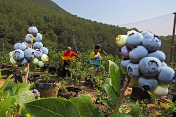 산청군 단성면 백운마을 허성회(63), 정순자(58)씨 부부 농가에서 블루베리 수확이 한창이다.