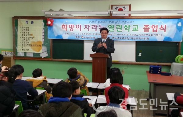거창교육지원청(교육장 강신화)에서 지원하고, (사)경상남도장애인부모회 거창군지부에서 운영하는「2015학년도 겨울방학 장애학생 희망나눔학교」가 22일 10주년 졸업식을 맞았다.