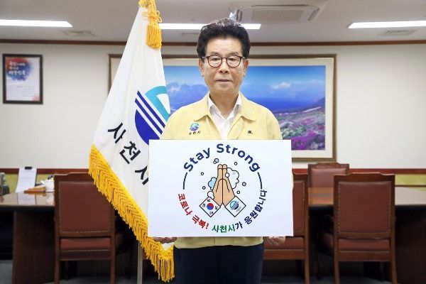 송도근 시장은 개인위생을 철저히 하여 코로나19와의 싸움을 이겨내자는 의미를 담은 ‘Stay Strong’로고에 ‘코로나 극복! 사천시가 응원합니다.’라는 문구를 담은 팻말을 들고 캠페인에 참여하며, “코로나19 현장에서 헌신하고 있는 의료진과 방역수칙 준수, 생활 속 거리두기 실천에 적극 협조하는 시민들에게 깊이 감사하며 소중한 일상을 하루 빨리 되찾을 수 있도록 온 국민이 노력해 코로나19 사태를 이겨내자”고 말했다.