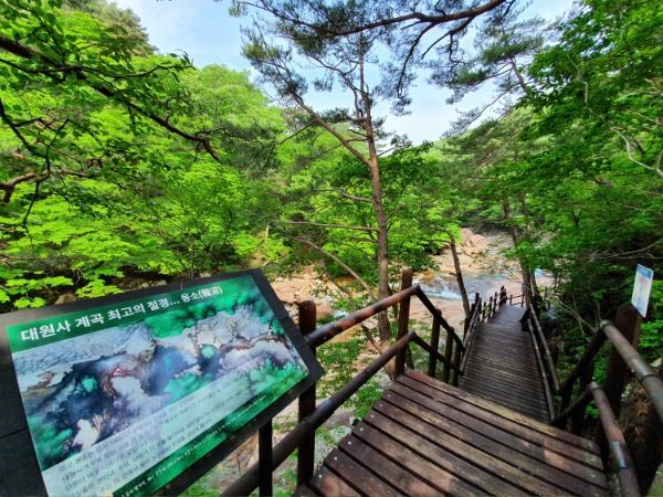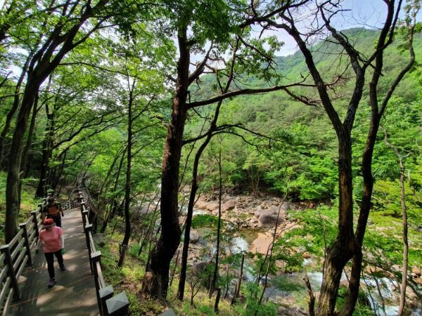 탐방로 중간중간에 계곡이 품은 역사적 사실을 설명하는 해설판과 이곳의 생태·환경에 대한 안내문이 곁들여져 있어 교육적으로도 좋다. 특히 일제강점기 때 일본인들이 비행기 연료로 쓰기 위해 송진을 채취해간 자국이 남은 나무가 마음속에 오래 남는다.
