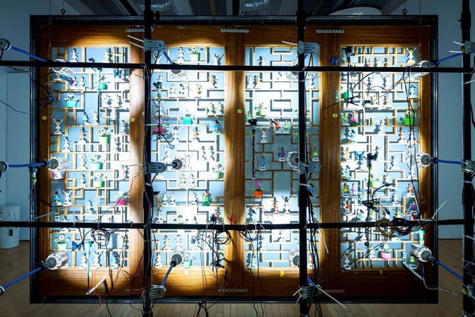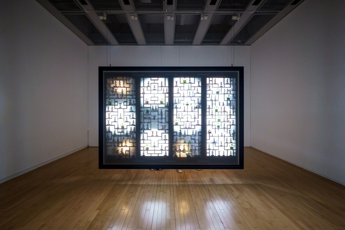 <북정동 세레나데>, 2022, 목재 전통창호, LED 램프, 오브제, 235×350×170cm