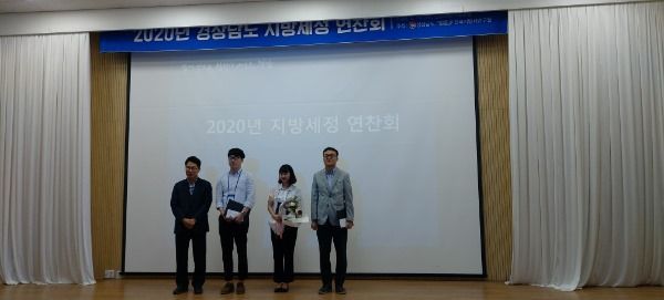 경남도 주관으로 개최된 2020 지방세정 연찬회 연구과제 발표대회는 도내 18개 시·군에서 제출한 22건의 연구과제 중 1차 서면심사를 통해 6건을 선정했으며, 이날 시·군의 발표를 통해 내용의 충실성, 발표력, 질의응답 대응력 등을 종합적으로 평가해 최종 수상자가 선정됐다.