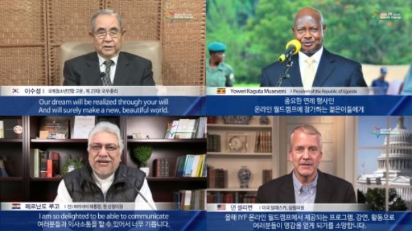 우간다 요웨리 카구타 무세베니(Yoweri Kaguta Museveni)대통령은 이번 월드캠프는 세계 방방곳곳에 있는 수천만 명의 대학생들이 참여하는 전례 없던 온라인 캠프라고 말했다. 무세베니 대통령은 축전을 보내 학생들이 창의력을 발휘하는 시간이 되길 바란다고 말했다. 그는 “코로나19가 정보와 물질적인 교류를 제약하지만, 정보의 교류와 아이디어 공유는 멈추게 할 수 없다”며, “이번 온라인 월드캠프는 젊은이들이 자기가 속한 공동체의 발전을 위한 일들에 참여할 수 있도록 자극할, 올바른 사고 체계와 태도를 갖출 수 있는 둘도 없는 기회가 될 것”이라고 축전을 보내왔다.