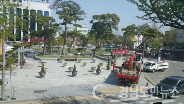 | 광장을 막고 있던 돌 화분이 치워져 넓은 품을 드러낸 거창군청앞 광장의 모습 |