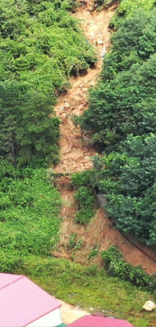 산사태는 많은 비와 지형적, 지질적 요인이 복합적으로 작용해 발생되는데 호우로 인해 많은 양의 빗물이 땅속으로 스며들면서 지지력이 약해지는 반면 무게는 늘어나 경사가 급한 산에서 토양층이 일시적으로 분리되면서 무너져 내리는 현상이다.