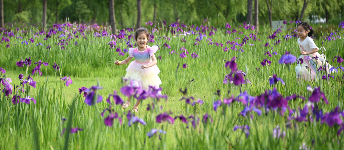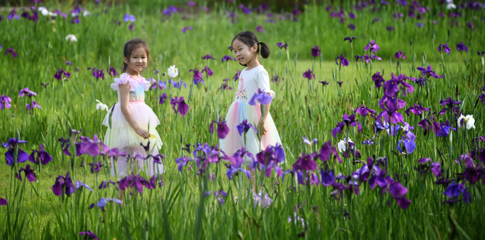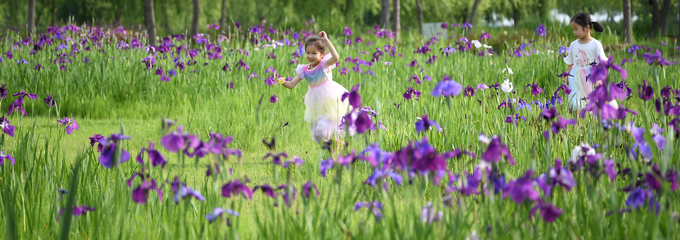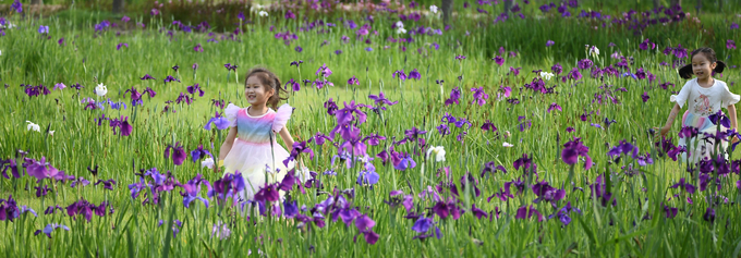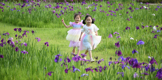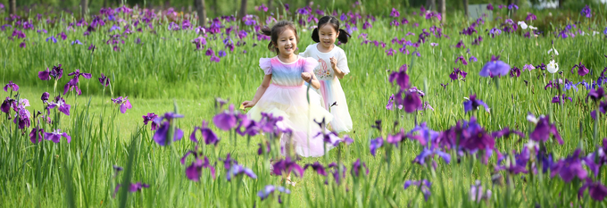 [경남도민뉴스] 7일 경남 거창군 남상면 거창창포원 보라색 창포꽃밭에서 아이들이 뛰어 다니며 즐거워하고 있다.