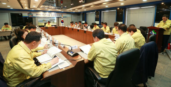 이날 협업반은 다중이용시설 대형 화재 발생을 가상상황으로 설정, 협업반별 시나리오에 대응한 임무 발표 및 문제점 보완 등 재난안전대책본부 운영 훈련을 했다.