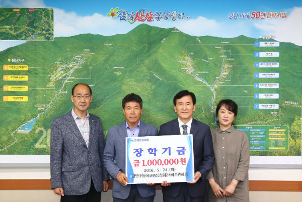 이어 금반초등학교총동창회 24회 주관회기(회장 진병탁)도 100만원을 기탁, “함양군 장학회가 후배교육을 지속적으로 지원해줘 감사하다”며 “작지만 지역 인재양성에 소중하게 써달라”고 당부했다.