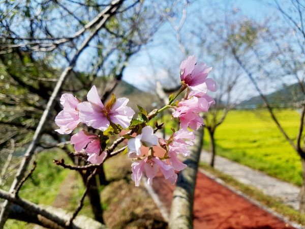 불시개화(식물싹이 개화하는 시기가 아닌데 개화하는 이상 발육 현상)로 3월~4월에 피는 벚꽃이 9월 하순인 20일 의령 자전거도로변 벚꽃 가로수중 한그루가 꽃을 활짝 펴 이곳을 지나는 이들의 발길을 멈추게 하고 있다.