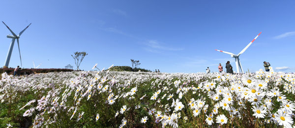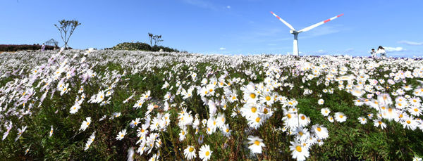 오늘 오후 경남 거창군 남상면 감악산 정상부근에 만개한 구절초가 가을바람에 살랑거리고 있다.