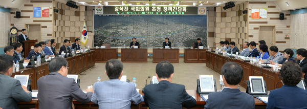 (거창=경남도민뉴스) 박현섭 기자 = 거창군(군수 양동인)은 지난 7일 군수,도의원, 군의원 등 40여명이 참석한 가운데 강석진 새누리당(거창,함양,산청,합천) 국회의원을 초청해 거창군의 주요 현안사업과 정책 건의사항, 2017년도 국·도비 확보 대책을 위해 발 빠른 정책간담회를 가졌다.