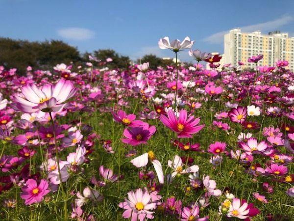 밀양시는 밀양강 둔치 내 18,000㎡ 규모에 코스모스 단지 2개소를 조성했다고 15일 전했다. 불볕더위와 연이은 태풍으로 인한 침수 속에서도 쓰레기를 치우고 씨를 뿌리고 잡초를 제거하는 등 지속적으로 관리해온 결과 현재 밀양강 둔치는 코스모스가 만발해 가을의 정취를 물씬 풍기고 있다.