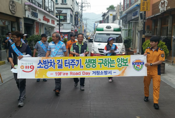 (거창/박현섭 기자) = 거창소방서(서장 손현호)는 지난 20일 소방공무원, 의용소방대원, 유관기관 등 40여명이 참여한 가운데 거창시장에서 출동로 확보를 위한 캠페인을 실시했다.