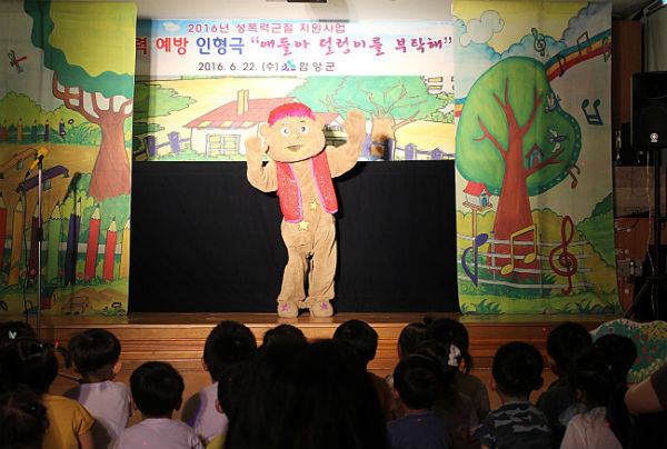 (함양/박현섭 기자) = 함양군(군수 임창호)은 지난 22일 안의어린이집 강당에서 관내 안의어린이집·서상분원·도담어린이집 원생 80여명을 대상으로 아동성폭력예방인형극 <애들아 덜렁이를 부탁해> 공연을 실시해 호응을 얻었다.