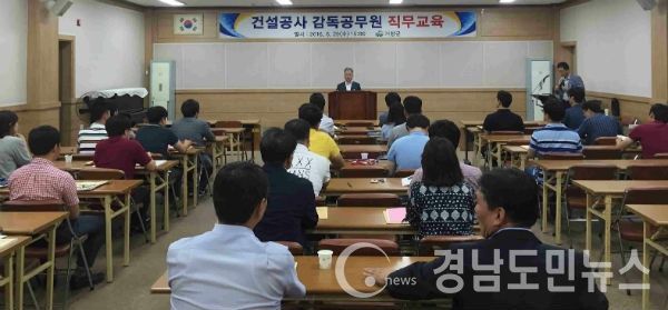 (거창/박현섭 기자) = 거창군(군수 양동인)은 지난 29일 종합사회복지관에서 건설공사 감독공무원 50여명을 대상으로 건설공사 부실방지와 청렴도 향상을 위한 직무교육을 실시했다고 밝혔다.