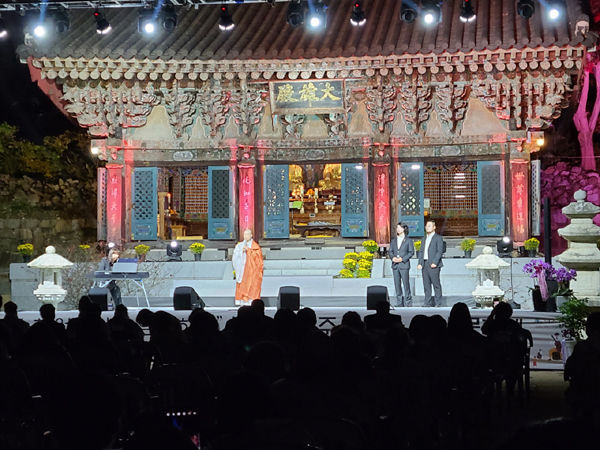 산사문화제는 어린이 국악예술단의 남도민요, 가야금 병창으로 막을 올렸다. 이어 저녁예불을 올린 뒤 본격적인 공연을 시작했다. 국악관현악, 현악 5중주, 초대가수 신계행의 통기타 발라드곡, 남성4중창 등 가을밤을 수놓는 다양한 전통 선율은 함께하는 이들의 마음을 사로잡기에 충분했다.