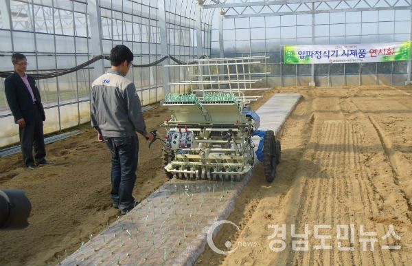 | 국가연구개발 우수성과 100선으로 선정된 양파정식기 시연 장면/ 자료제공=경남서부청사 |