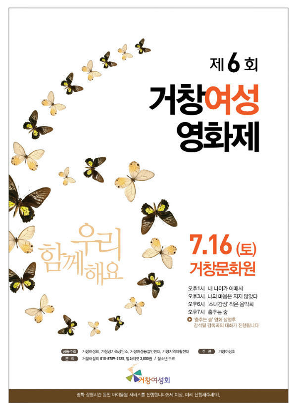 지난 2011년부터 진행된 이 영화제는 거창여성회 회원들이 직접 기획, 진행을 맡아 ‘관객이 주인 되는 영화’, ‘당당한 삶을 위한 영화’라는 가치를 두고 영화를 상영해왔고, 올해 영화제 주제는 ‘우리 함께 해요’이다. 지난해 거창군민 뿐만 아니라 우리 사회는 분열과 갈등으로 힘든 시기를 겪으면서 ‘연대’라는 가치가 어느 해 보다 더 절실하게 느껴졌기에 ‘우리 함께 해요’라는 주제로 3편의 영화를 상영한다.