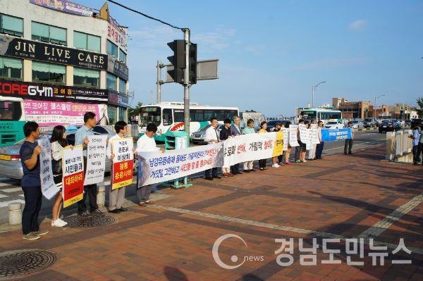 또 "가림막과 유료화는 땔래야 땔 수 없는 관계다" 말하고, "가림막의 진정한 개선은 설치하지 않는 것임에도, 진주시장의 "유료화 문제를 다소 시간이 걸리더라도 더 많은 여론을 수렴하겠다" 말은 모순에 불과하다"며 진주시 주장의 모순을 지적했다.