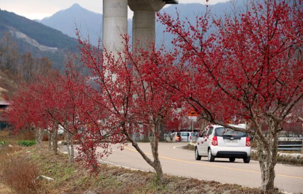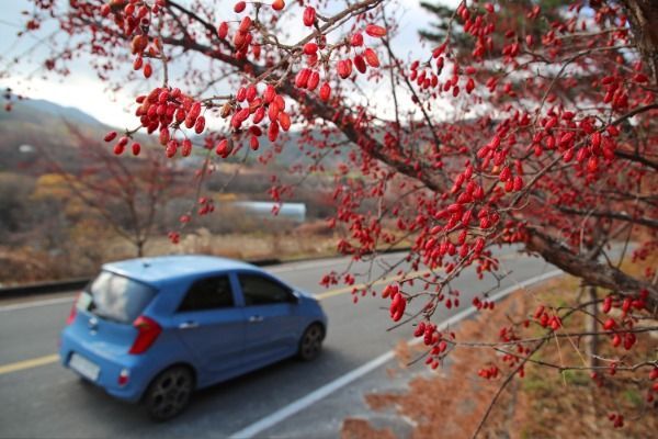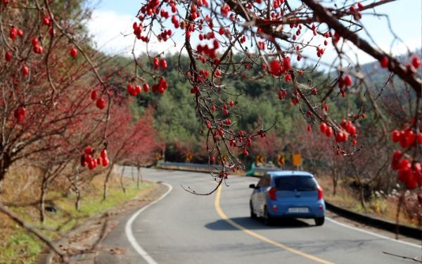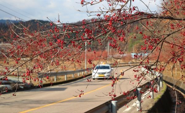 이 길은 구불구불한 길과 빨간 산수유가 어우러져 드라이브하기에 제격이다.