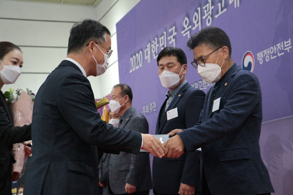 [경남도민뉴스] 대한민국옥외광고협회가 주최, 주관하고 행정안전부가 후원하는 제34회 2020 대한민국 옥외광고 대상전에서 현재 의령과 창원에 업체를 둔 GOODDESIGN 전진수 대표(의령 출신)가 영예의 행정안전부 장관상을 수상했다.