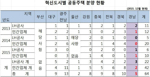 또, 타 지역들의 경우 민간업체 공동주택 사업승인이 2배 가까이 높았지만, 유일하게 진주시만 LH공동주택 사업승인건이 민간업체보다 많았다.