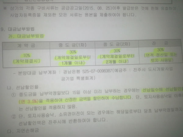 업체측은 사업승인 신청에 필요한 토지사용승락 역시 토지 분양대금을 모두 납부하지 않은 상태에서 받았다. 또, 당초 진주시는 2015년 8월 25일 공고문따르면 업체는 토지대금으로 계약금(10%), 1차 중도금(30%), 2차 중도금(30%), 잔금(30%) 등을 네 차례에 걸쳐 분할 납부해야 했다. 하지만 어쩐일인지 진주시는 센트럴웰가측에 토지대금 총 50%를 납부받지 않은 상태에서 2015년 12월 초 사업승인을 했다. 2016년 초에는 착공도 했다. 센트럴웰가 업체측은 분양승인 이틀전인 2016. 2. 15일에야 토지 분양대금을 진주시에 모두 완납했다.
