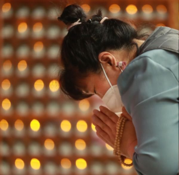 대학수학능력시험일인 3일 오전 경남 함양군 금선사에서 수험생 자녀를 둔 한 학부모가 간절한 기도를 하고 있다.