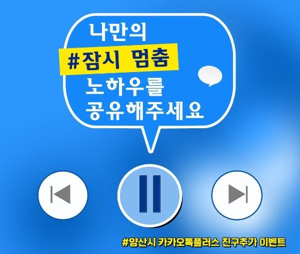 [경남도민뉴스] 양산시는 양산시 카카오톡 채널을 통해 지난 11일부터 2021년 1월 10일까지 ‘#잠시멈춤 나만의 노하우를 공유해주세요’ 카카오톡 친구추가 채널 이벤트를 실시한다고 밝혔다.