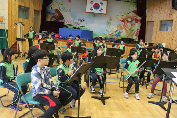 | 곤명윈드오케스트라 단원들이 합주연습을 하는 모습/ 사진출처=곤명초등학교 홈페이지 |