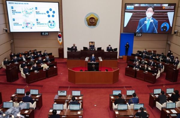 지난 6일 신년 기자회견을 통해 2021년 도정 운영방향을 밝힌 김 지사는 올 들어 처음으로 열린 도의회에서 도의원들을 대상으로 ‘동남권 메가시티 기반 구축’, ‘뉴딜 선도 스마트인재 집중양성’, ‘기후위기 선제 대응’ 등 3대 중점과제를 다시 한 번 설명하며 협조를 당부했다.