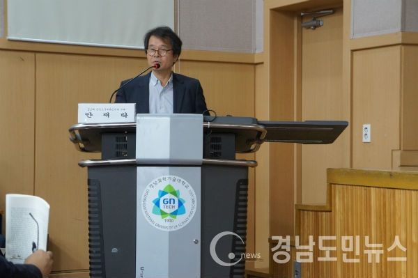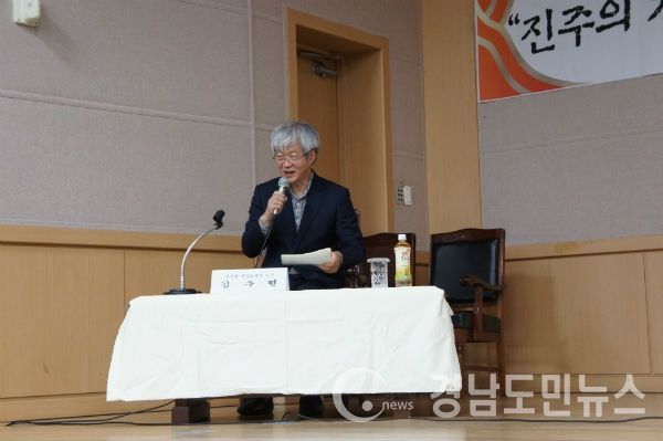| 진주성광장 조성에 대해 설명하고 있는 김수현교수의 모습/ 사진=조권래 |
