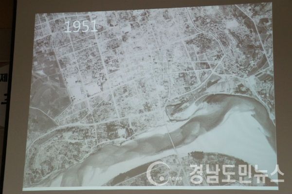 | 1951년의 진주성과 남강의 모습/자료출처=안재락교수 설명자료 |