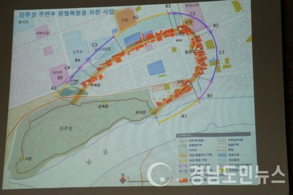 또, 안재락 교수는 진주시의 광장 설계공모 취지문과 순천시의 예술과장조성 공모전 설계배경문을 발췌해 시민들에 설명하고, 순천시 사업과정을 담은 책자에 실린 내용인 "도시공간의 디자인은 지금부터 100년간의 도시경관을 결정짓는다. 시민들과 정성껏 찾은 개념과 언어를 공사의 세부디테일에 이르기까지 침투시킬수 있었다........"를 통해 진주성 광장 복원의 의미를 되새길 수 있도록 설명을 이어갔다.