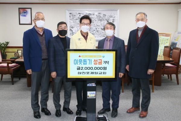 [경남도민뉴스] 삼천포제일교회가 1월 19일 사천시청을 방문해 연말연시를 맞아 「희망나눔 4000 이웃사랑」성금으로 200만 원을 기탁했다.