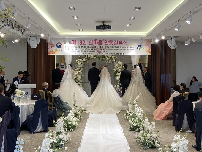[경남도민뉴스] 한국법무보호복지공단 경남서부지소 주관으로 11. 29.(수) 진주 아시아레이크사이드 웨딩컨벤션에서 거창 보호관찰대상자 부부를 포함한 총 3쌍의 부부가 합동결혼식을 올렸다.