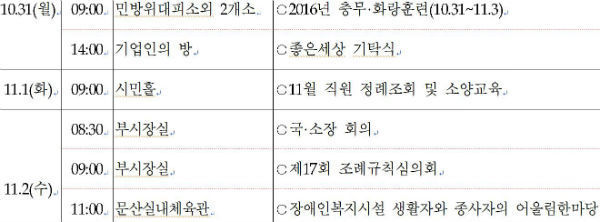 | 진주시가 기자에게 제공한 11월 첫째주 진주시 행사일정에는 벼 수매에 대한 일정이 없다/ 자료출처 = 진주시 |