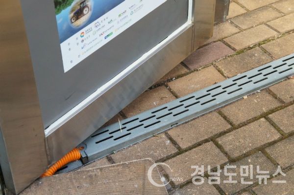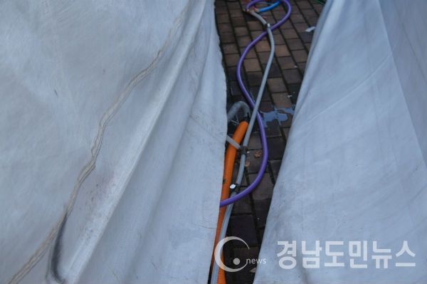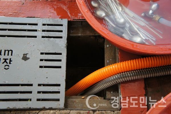 2016년 진주국제농식품박람회장에 설치된 음식물판매 부스에서 연결한 하수관이 우수시설과 연결돼 있는 모습/ 사진 =조권래