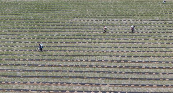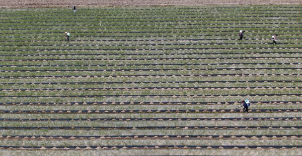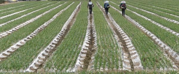 봄 기운이 완연한 10일 경남 거창군 가조면의 마늘밭에서 농민들이 바쁜 하루를 보내고 있다.